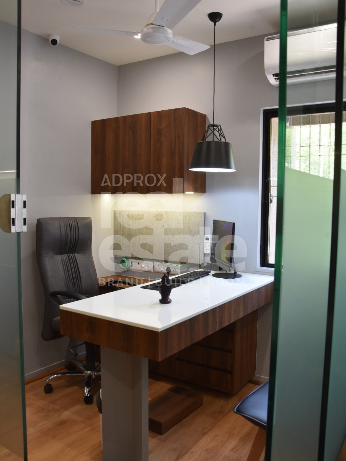 Layout: 2 Private Owner Chambers & 3 Dedicated Employee Desks.