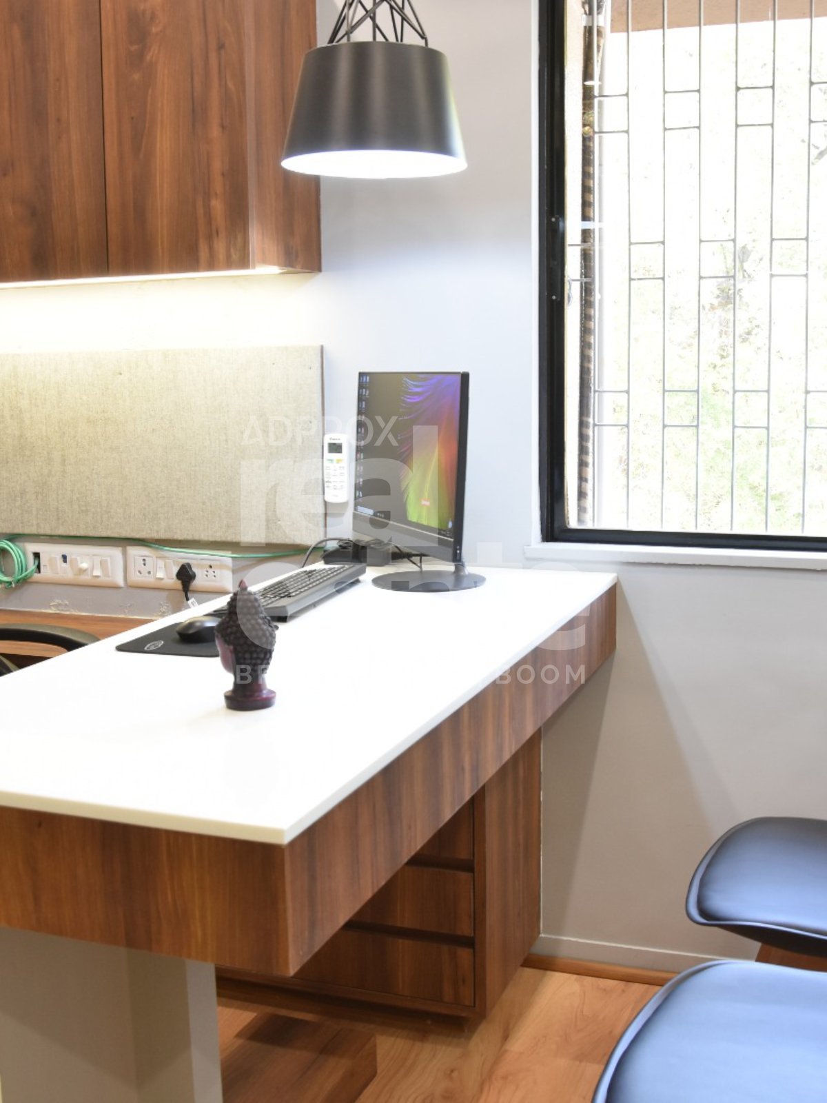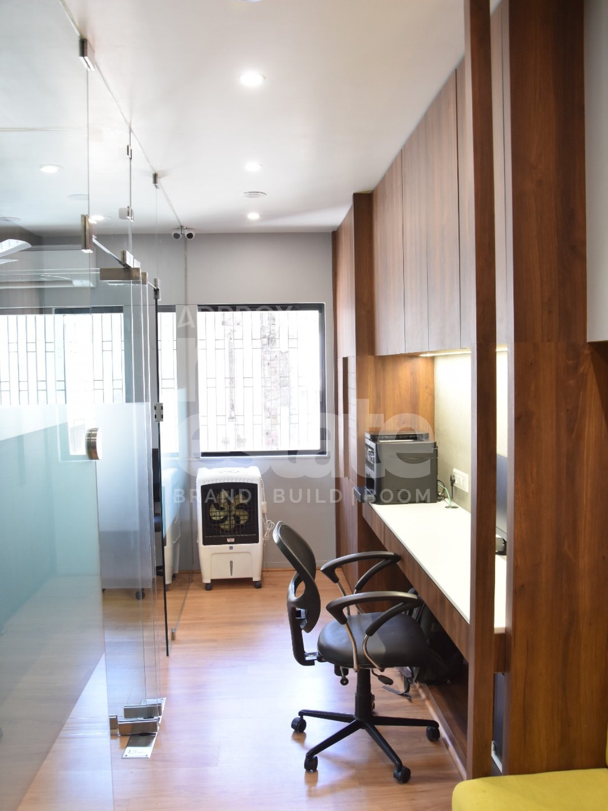 Layout: 2 Private Owner Chambers & 3 Dedicated Employee Desks.